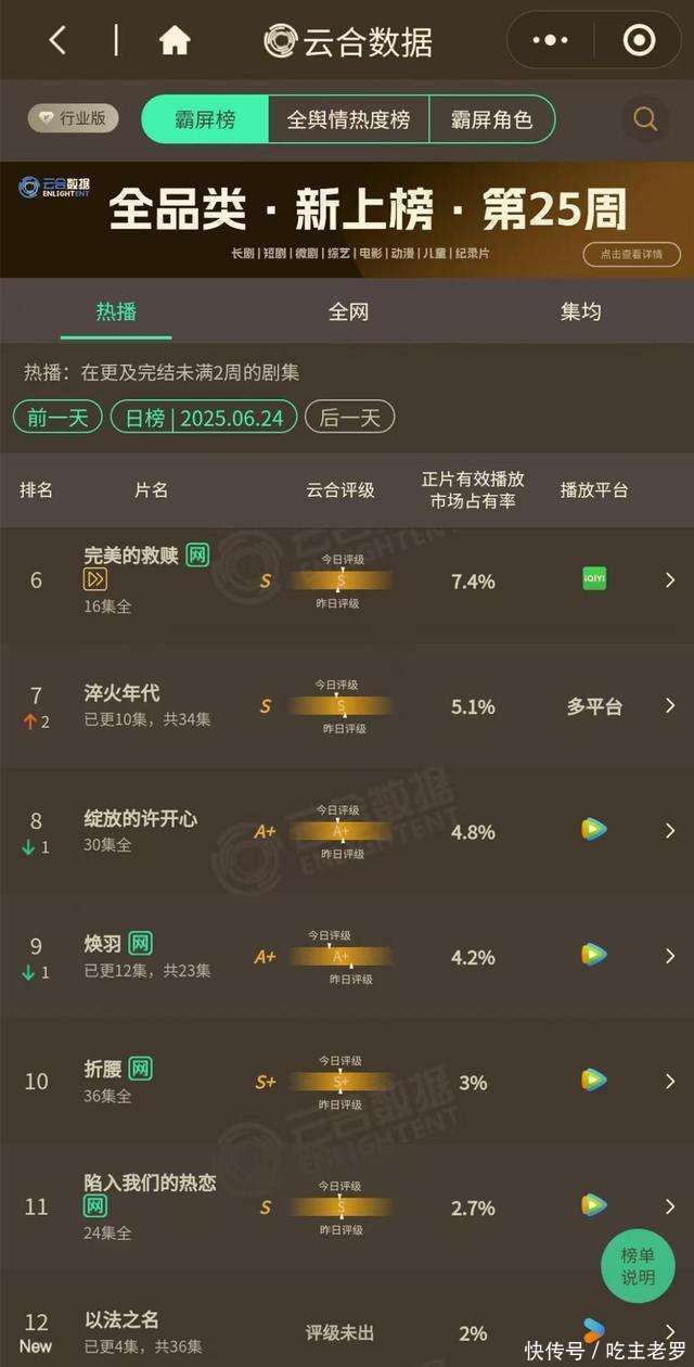 体育博彩交流平台网罗热度这块儿,也够呛。优酷砸了不少资源,效果云合数据上,名次才12,商场占有率2%。热度低点儿,还能说是没流量明星炒作,但播放量这样惨淡,就有点不对理由了。猫眼专科版也好不到哪儿去,集均播放量才205.5万,这数据,跟大剧根蒂不沾边。